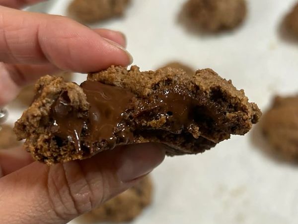 Our Double Chocolate Chunk Cookie that has the bite of a chewy Brownie and the outside Crunch of a Cookie.